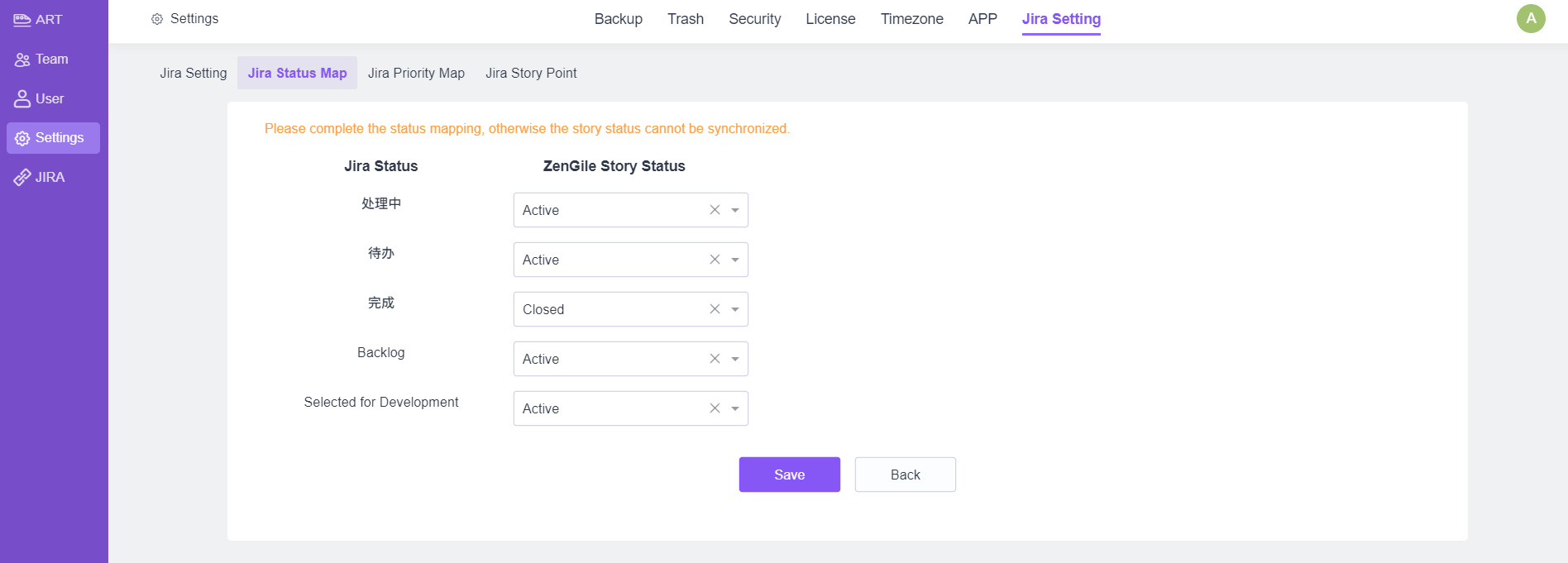 2. 配置Jira中issue的状态映射。