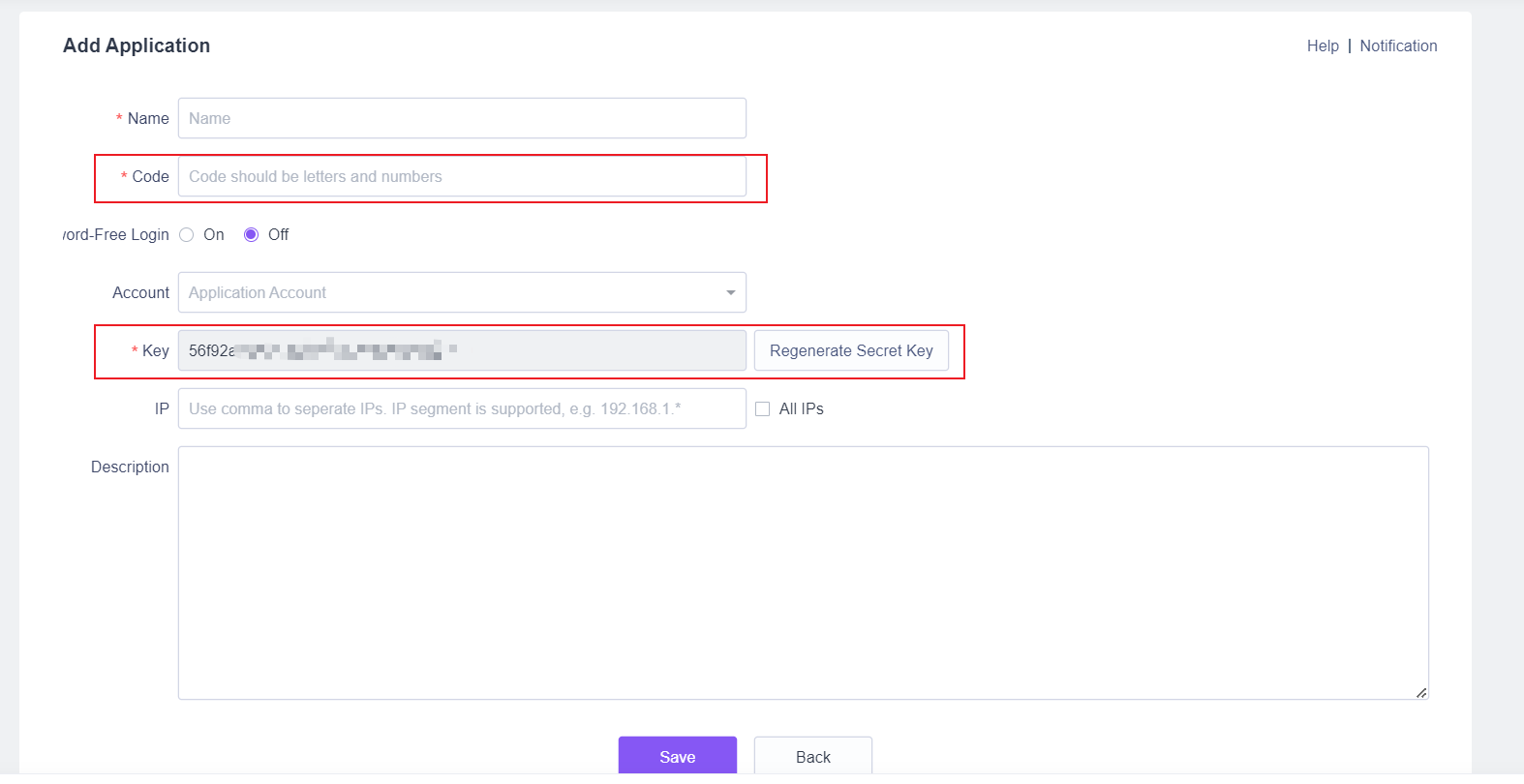 2. 在ZenGile的设置中,添加应用,填写必填项并生成密钥。
