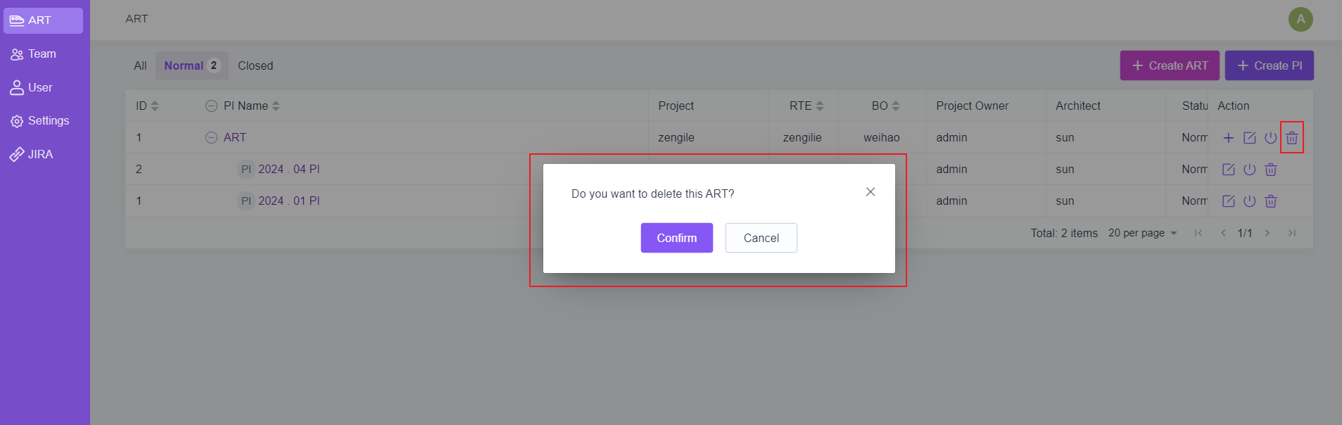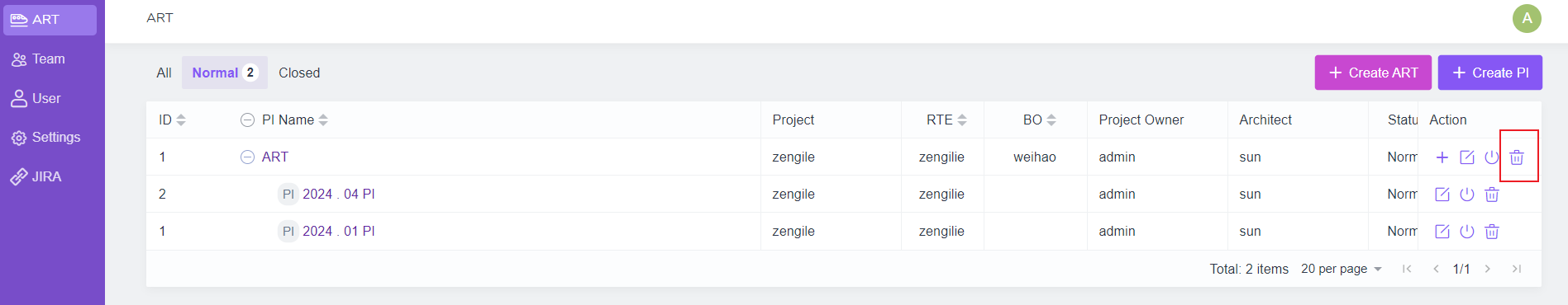 2. ART中的项目会读取jira中已经创建好的项目。