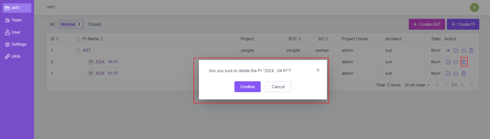 1.1. You can create a PI for this ART directly on the [ART] page.